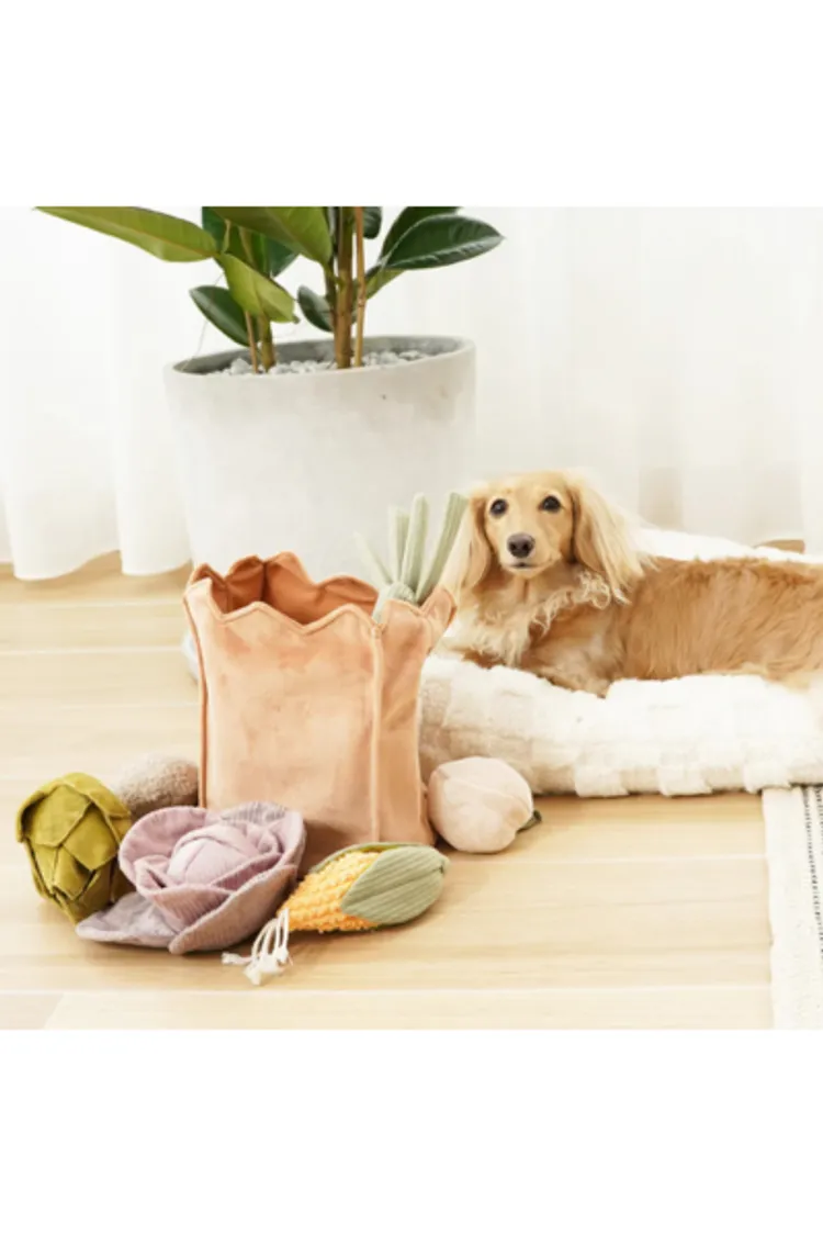 帶領毛孩逛逛我們的農夫市集!這款全新 FARMER'S MARKET SET 包含 7 款精心設計的玩具,透過多元的聲音回饋、嗅聞口袋與獨特材質,全方位刺激毛孩的感官