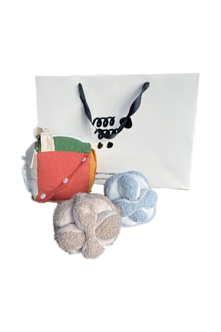 此組合內容物包含 :🎲忙碌工作方塊*1、🌍蒙球小宇宙(藍色/燕麥色擇1)*1、品牌棉布袋*1、品牌大款手提紙袋*1